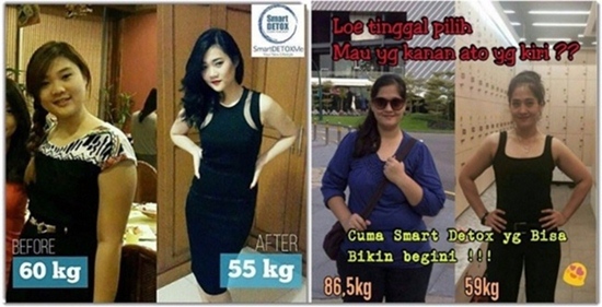 Kembali ke Smart Detox, anda harus tahu arti dua kata ini. Smart Detox adalah suatu program atau metode atau cara yang sangat revolusioner untuk detoksifikasi yang memiliki dampak positif berat turun 5 – 10 kg (bisa juga lebih) dalam waktu 20 hari. Cara melakukan program Smart Detox dengan mengkonsumsi suplemen berkualitas (contoh Smart Detox dari PT Synergy). Dibawah ini salah satu contoh seorang ibu yang berhasil berat badan turun karena mengikuti program diet.